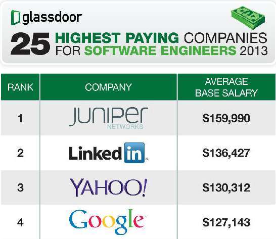 25家公司程序员年薪图:雅虎第三谷歌第四苹果第六